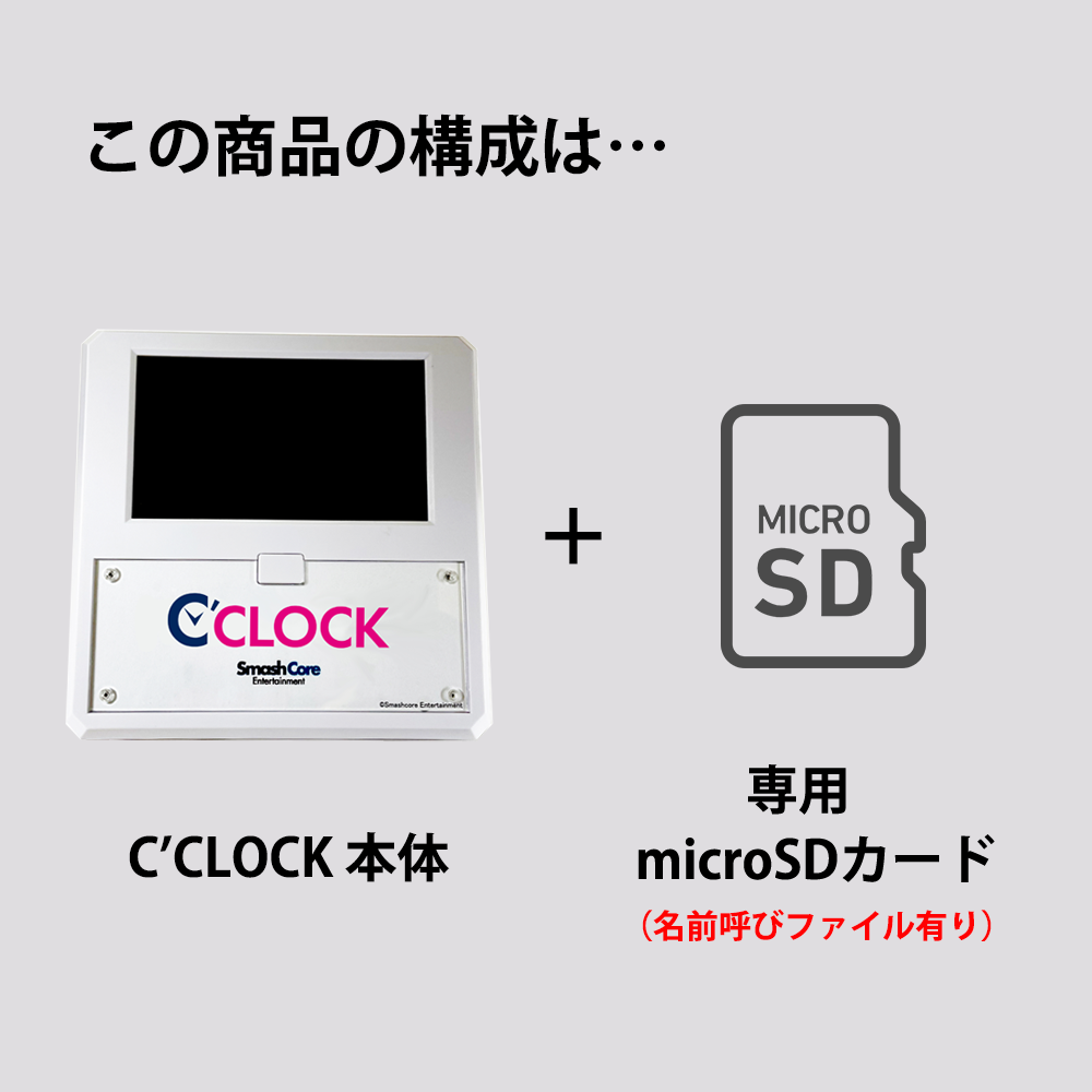 声優さんの音声データは時計本体に挿さっている専用microSDカード内で管理していますのでmicroSDカード差し替えで音声データの変更(着せ替え)をすることが可能です。C’CLOCK は、弊社が長年展開している 声優オリジナルパソコン Type:YOU と同様にシリーズ化して参りますので、時計本体を1つお買い求めいただければ、それ以降、別のお気に入りの声優さんの商品が受注開始となったら、専用microSDカードの購入のみでその声優さんのモデルとして本体を着せ替えることができます。