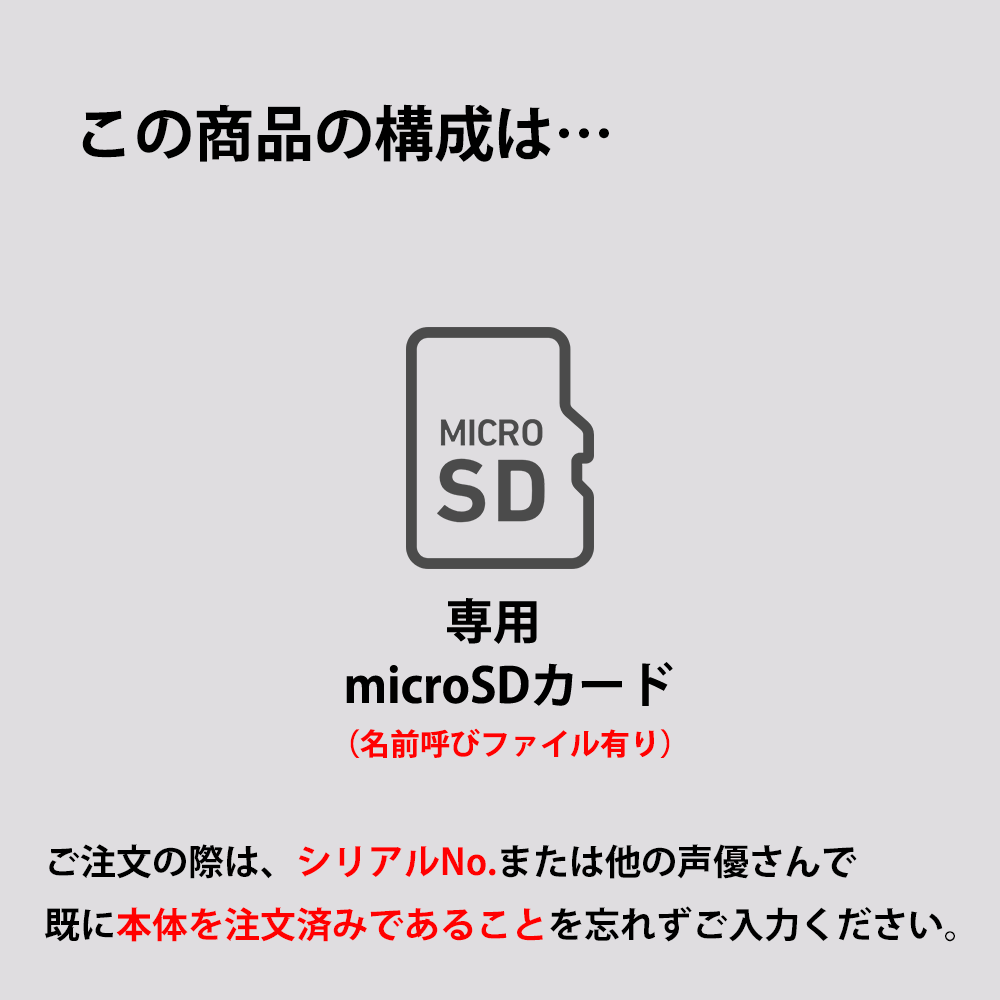 声優さんの音声データは時計本体に挿さっている専用microSDカード内で管理していますのでmicroSDカード差し替えで音声データの変更(着せ替え)をすることが可能です。C’CLOCK は、弊社が長年展開している 声優オリジナルパソコン Type:YOU と同様にシリーズ化して参りますので、時計本体を1つお買い求めいただければ、それ以降、別のお気に入りの声優さんの商品が受注開始となったら、専用microSDカードの購入のみでその声優さんのモデルとして本体を着せ替えることができます。